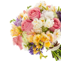 Букет из розовых роз и альстромерийНежная любовь