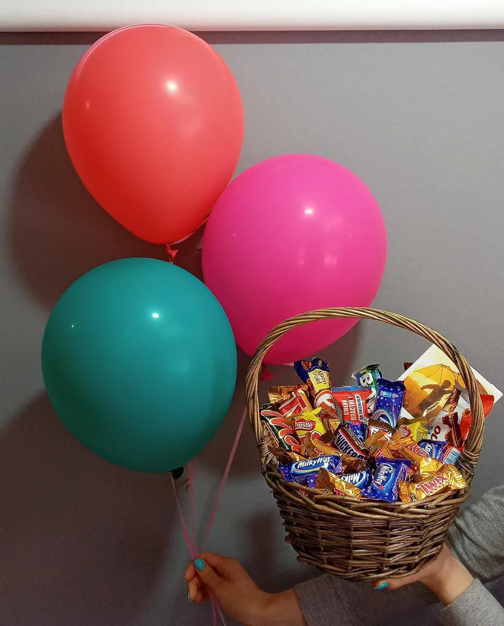 —Сладкая корзина с шоколадными батончиками