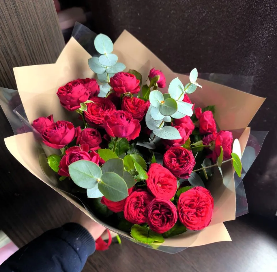 Букет из красных пионовидных роз – это воплощение романтики и глубоких чувств. Каждый цветок в этом букете, словно нежное признание в любви, раскрывает свои бархатистые лепестки, наполняя воздух сладким ароматом. Красный цвет символизирует страсть и нежность, а пионовидные розы, с их объемной формой и роскошной текстурой, создают атмосферу немного сказочную, словно вы променяли время на мгновение счастья.