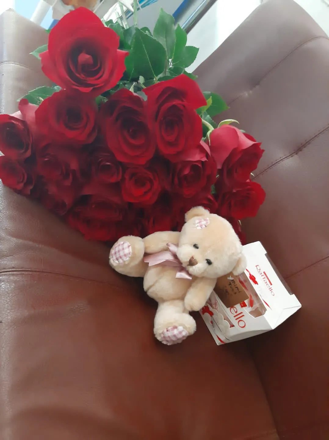 • Средний - 15 роз, игрушка, Раффаэлло 150 гр.