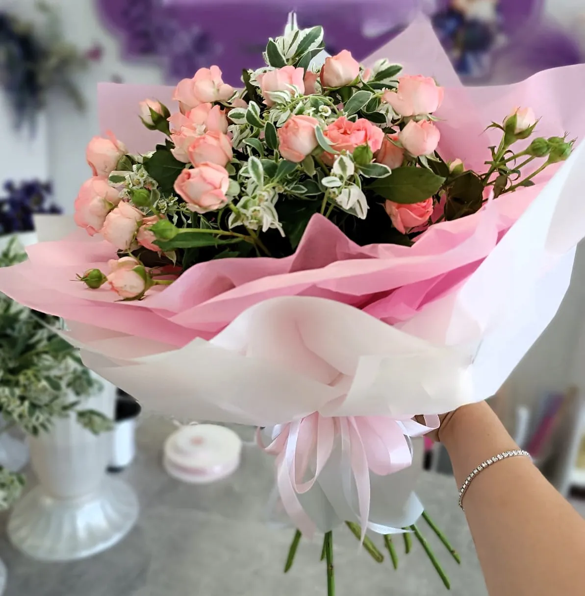 Букет из кустовых роз — это настоящее произведение искусства, способное украсить любой интерьер и поднять настроение.