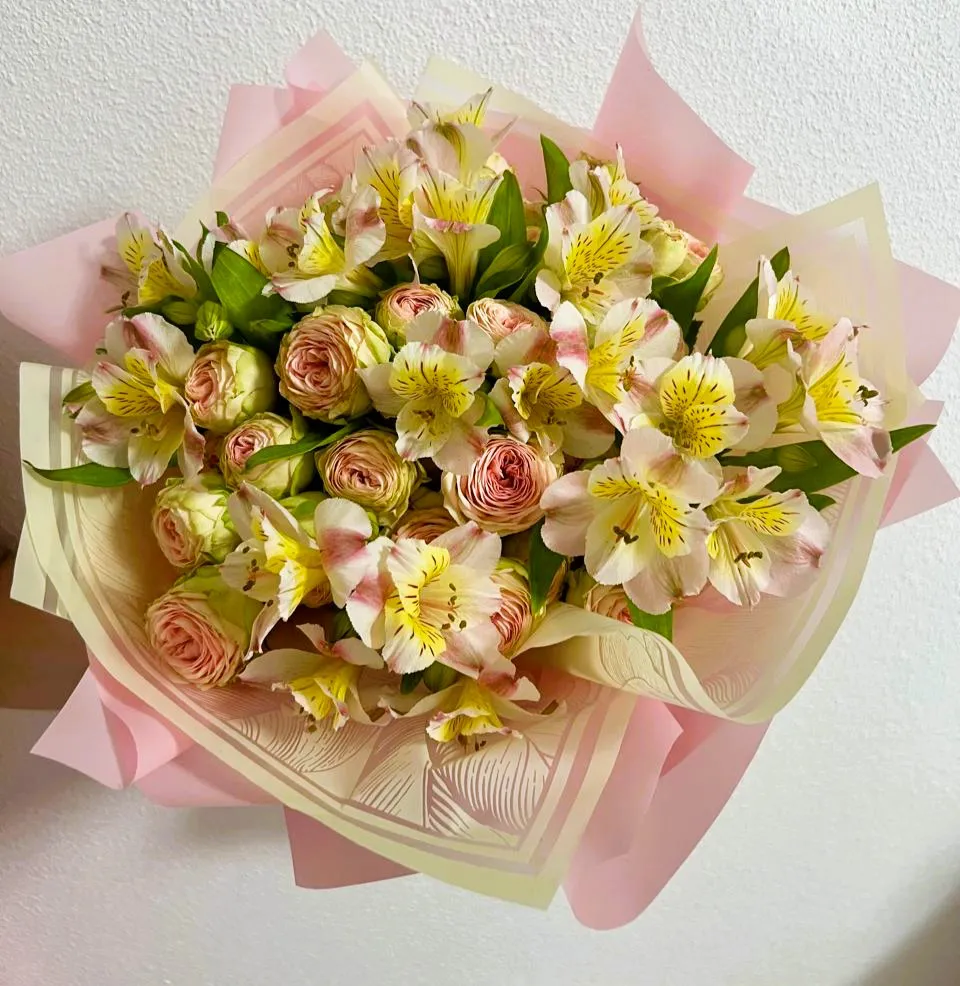 Купить букет с кустовыми розами и альстромериями – значит подарить своим близким частичку красоты и радости, подчеркнуть их утонченный вкус и выразить самые искренние чувства.