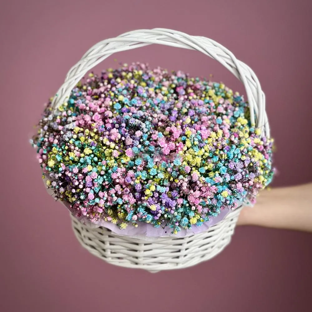 Представляем вашему вниманию элегантную корзину с радужной гипсофилой!