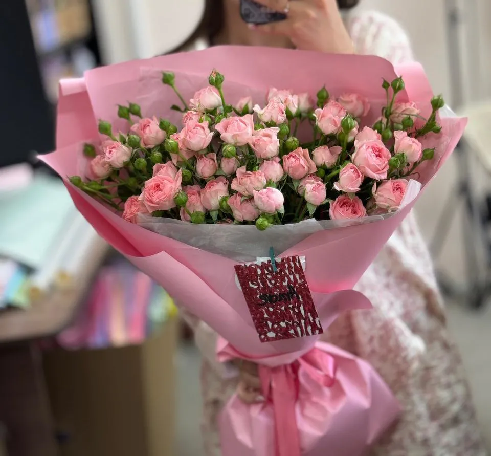 Букет из розовых кустовых роз — это великолепный выбор для любого торжества или как подарок без повода. Розовые кустовые розы отличаются своей нежностью и charm, они могут передать множество эмоций — от любви до симпатии. Такой букет станет не только украшением, но и долгожданным подарком, который принесет радость и красоту в любой дом!