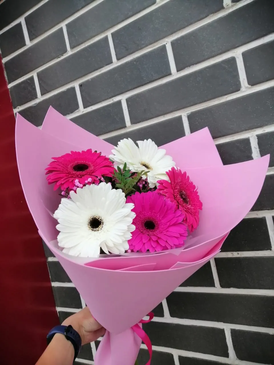 Вариант—Стандарт - гербера - 5 шт., упаковка, лента